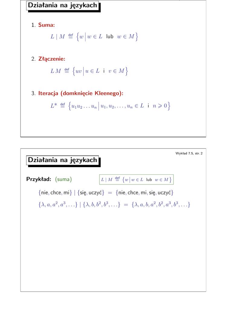 w w ∈ L lub w ∈ M
