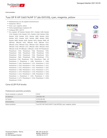 Tusz OP R HP C6657A/HP 57 (do DJ5550), cyan, magenta, yellow