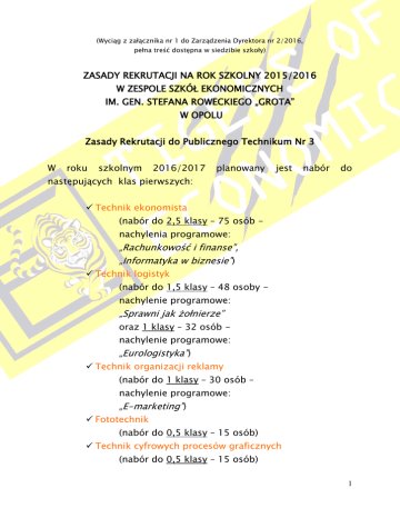 Zasady Rekrutacji - Zespół Szkół Ekonomicznych w Opolu