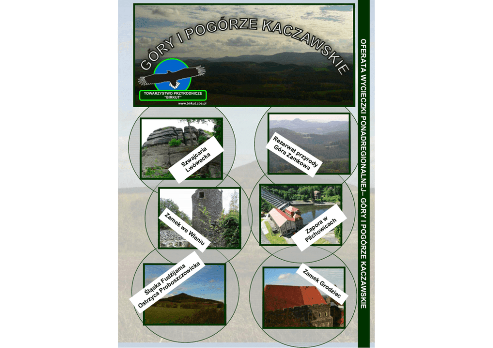 Za m ek Os we W le ni u a icka m ija ow dż zcz u F os ka rob s ą Śl ca P y trz w ra ach o ic p Za how lc Pi Za m ek G ro dz iec OFERATA WYCIECZKI PONADREGIONALNEJ– GÓRY I POGÓRZE KACZAWSKIE ia ar a c j k wa ec Sz ów Lw Re z Gó erwa ra t p Za rzy mk ro ow dy a Góry i Pogórze Kaczawskie to najbarOFERATA WYCIECZKI PONADREGIONALNEJ– GÓRY I POGÓRZE KACZAWSKIE dziej na północ wysunięta część Sudetów Zachodnich. Na zachodzie oddziela je od Gór Izerskich rzeka Bóbr z pięknymi przełomami, na południu ogranicza je Kotlina Jeleniogórska, a od wschodu Nysa Szalona. Góry Kaczawskie charakteryzują się mozaikową budową, w której zawarta jest długa i złożona historia ich geologicznego rozwoju. Różnorodność podłoża skalnego, żyzność gleb i korzystny klimat pozwoliły na rozwój bogatej szaty roślinnej, co wpływa na dużą malowniczość krajobrazu. Wycieczka ma za zadanie przygotowanie dzieci, do bezpiecznego poruszania się po górach. Dodatkowo dzieci dowiedzą się jak zachowywać się w terenie górzystym, współpracy w grupie oraz poznają gatunki fauny i flory krajobrazu górskiego. Miejsce wycieczki znajduje się na terenie podgórskim gdzie najwyższe wzniesienia dochodzą do 501 m n.p.m. czyli są to tereny odpowiednie do rozpoczęcia przygody w górach na etapie nowicjusza. SZWAJCARIA LWÓWECKA Szwajcaria Lwówecka położona jest na południowy wschód od centrum miasta na wysokości 250-260 m n.p.m. Tworzą ją ciekawe formy skalne oraz malownicze labirynty z urwiskami dochodzącymi do wysokości 30 m. Krajobraz taki powstał w wyniku intensywnego wietrzenia mrozowego czerwonych piaskowców triasowych oraz szarych piaskowców kredowych. Ze względu na wysokie wartości geologiczne, geomorfologiczne i florystyczne tych skał planuje się tu utworzenie rezerwatu przyrody. Na terenie Lwóweckich Skał znajduje się Ścieżkę Dydaktyczno-Przyrodniczą "Szwajcaria Lwówecka". REZERWAT PRZYRODY– GÓRA ZAMKOWA Rezerwat położony jest w obrębie miasta Wleń, jego łączna powierzchnia to 21.48 ha. Został utworzony w 1994 roku celem zachowania rzadkich w skali kraju fragmentów lasu ze zboczowymi zbiorowiskami grądu. Rezerwat położony jest na wzgórzu, na którego szczycie znajdują się ruiny średniowiecznego zamku z zachowaną jeszcze wieżą obronną, z której rozciąga się widok na okoliczne pasma górskie. Głównym zbiorowiskiem leśnym na terenie rezerwatu jest grąd zboczowy z bujnymi w okresie wiosennym runem leśnym w postaci czosnku niedźwiedziego. Mniejsze fragmenty stanowią kwaśne buczyny oraz świerczyny. Bogata florę rezerwatu tworzy 157 gatunków roślin naczyniowych w tym 9 gatunków chronionych : lilia złotogłów, parzydło leśne, bluszcz zwyczajny, cis pospolity, konwalia majowa, marzanka wonna, paprotka zwyczajna, pierwiosnka lekarska, kalina koralowa. Zamek Wleń jest uznawany przez niektórych badaczy za najstarszy zamek na ziemiach polskich. Powstał najprawdopodobniej już w XII wieku i w niewielkiej części dotrwał do naszych czasów. O ile same mury w najwyższym miejscu mają zaledwie 2 do 3 metrów wysokości, o tyle można z powodzeniem wspiąć się na przygotowaną do zwiedzania wieżę i podziwiać roztaczające się z niej malownicze widoki. Budowla znajduje się na szczycie wzniesienia wśród rezerwatu leśnego klonowo-lipowego Zamkowa Gó- ZAPORA W PILCHOWICACH Zapora Wodna Pilchowice jest drugą co do wysokości w Polsce (po Solinie). Została zaprojektowana przez Prof. O. Intze, Dr Ing. C. Bachmann. Decyzję o budowie zapory Pilchowic podjęto po wielkiej powodzi, jaka nawiedziła te tereny w lipcu 1897 roku. Kulminacja fali powodziowej na Bobrze wynosiła 1200 m³/s. Budowa stopnia, którą poprzedził zaledwie dwuletni okres przygotowawczy rozpoczęta została w roku 1904. W latach 1904-1906 wykonano sztolnię obiektową, a w latach 1906-1908 przygotowano wyłomy pod fundament budowli. Kamień węgielny pod budowę zapory został położony 20 czerwca 1908 roku. Korpus zapory posadowiony na rodzimych skałach (gnejsy i granito - gnejsy) stanowi mur z kamienia łamanego na zaprawie cementowo - trasowo - wapiennej. Użyty do budowy kamień pochodził z miejscowych kamieniołomów zlokalizowanych na terenie lub w pobliżu terenu zajmowanego pod zbiornik. Budowa stopnia zakończona została w 1912 roku. ŚLĄSKA FUDŻIJAMA - OSTRZYCA PROBOSZCZOWICKA Wzniesienie położone jest, w południowo-zachodniej części Pogórza Kaczawskiego, na Wysoczyźnie Ostrzyckiej, w województwie dolnośląskim, w powiecie złotoryjskim, w gminie Pielgrzymka, około 2,5 km na południowy-zachód od miejscowości Proboszczów. Powulkaniczne wzniesienie, w kształcie stożka. Wzniesienie o dość stromych zboczach, z wyraźnie podkreślonym wierzchołkiem, wznosi się samotnie w środkowo-zachodniej części Wysoczyzny Ostrzyckiej wyraźnie odróżnia się od płaskiego krajo- OFERATA WYCIECZKI PONADREGIONALNEJ– GÓRY I POGÓRZE KACZAWSKIE RUINY ZAMKU WLEŃ OFERATA WYCIECZKI PONADREGIONALNEJ– GÓRY I POGÓRZE KACZAWSKIE brazu i jest łatwo rozpoznawalne w terenie. Wzniesienie o zróżnicowanej budowie geologicznej, zbudowane z wulkanitów mioceńskich stanowiących część rdzenia dawnego wulkanu tarczowego wypełnionego lawą oraz pokrywy lawowej o zasadowej lawie. Zbudowana jest z bazanitu jednej z odmian bazaltu. Na szczycie wzniesienia występują malownicze skałki. Wzniesienie porośnięte w całości lasem, skalne zbocza porasta z trudem wciskający się między skały, las odroślowy, który tworzy: jawor, jesion, lipa, wiąz i w mniejszych ilościach dąb. Niżej występuje świerk i brzoza. W szczytowej partii wzniesienia położonej powyżej 450 m n.p.m., utworzono rezerwat przyrody Ostrzyca Proboszczowicka o powierzchni 3,81 ha, w którym przede wszystkim chronione jest bazaltowe gołoborze i porastająca je roślinność naskalna. Sam szczyt będący dominantą wysokościową okolicy stanowi dobry pu