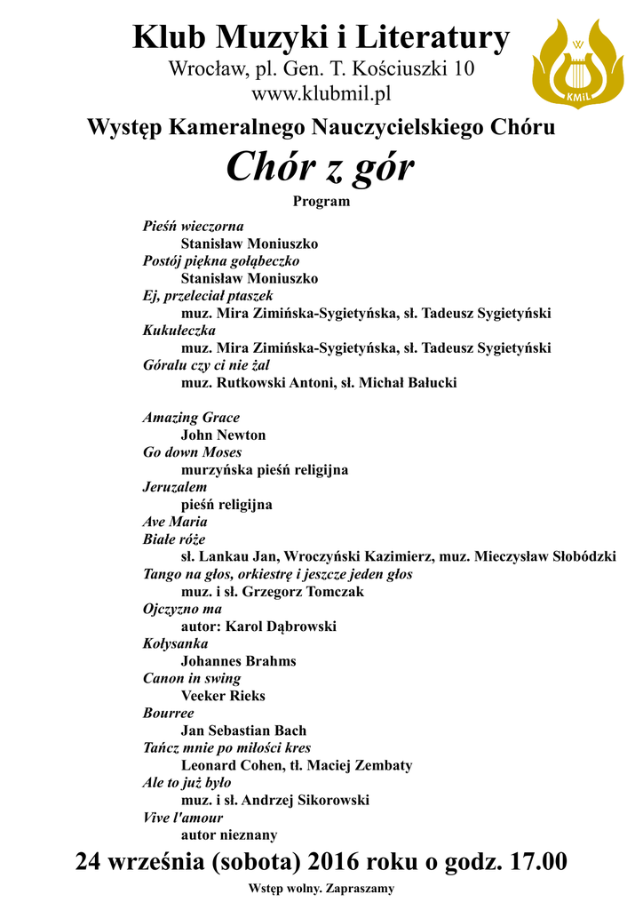 Program - Klub Muzyki i Literatury we Wrocławiu