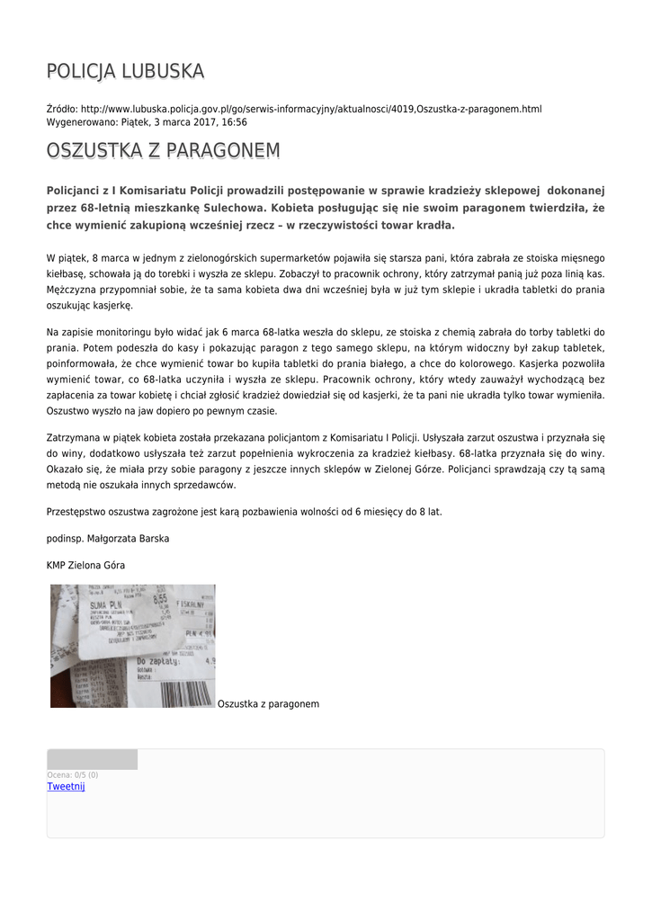 POLICJA LUBUSKA OSZUSTKA Z PARAGONEM