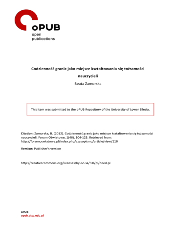 Codzienność granic jako miejsce kształtowania się tożsamości nauczycieli Beata Zamorska This item was submitted to the oPUB Repository of the University of Lower Silesia. Citation: Zamorska, B. (2012). Codzienność granic jako miejsce kształtowania się tożsamości nauczycieli. Forum Oświatowe, 1(46), 104-123. Retrieved from: http://forumoswiatowe.pl/index.php/czasopismo/article/view/116 Version: Publisher's version http://creativecommons.org/licenses/by-nc-sa/3.0/pl/deed.pl oPUB opub.dsw.edu.pl FORUM OŚWIATOWE 1(46), 2012 KU PERSPEKTYWIE SPOŁECZNO-KULTUROWEJ W EDUKACJI PL ISSN 0867–0323 Beata Zamorska Dolnośląska Szkoła Wyższa Codzienność granic jako miejsce kształtowania się tożsamości nauczycieli Prowadzone przez badaczy społecznych analizy szkolnej rzeczywistości, poprzez różnorodne pytania poszerzają wiedzę o tym, co dzieje się w przestrzeni szkolnej, pozwalają na rekonstrukcję struktur oraz reguł, zasad determinujących przebieg zachodzących procesów, sposobów działań, stosowanych rozwiązań. W niniejszym artykule próbuję uchwycić problematyczność zawodowej codzienności nauczycieli poprzez spojrzenie na tożsamość kształtowaną w nieustannych relacjach, w których toczy się ich profesjonalne życie. Sama kategoria tożsamości nauczycieli była i jest stałym przedmiotem dociekań teoretyczno-badawczych (Dróżka, 2008; Gołębniak, 2001; Kwiatkowska, 2005; Ligus, 2009; Connelly, Clandinin, 1999, 2000). Intencją, która przyświeca mi w zabieraniu głosu na ten temat, jest zwrócenie uwagi na jedno z najbardziej podstawowych założeń w naukach społecznych, iż nasze życie toczy się pośród innych, a tożsamość Ja nie jest jedynie efektem indywidualnych wysiłków, lecz procesem społecznym. Clandinin i Connelly opisując zachodzące zmiany w sposobach badania świata nauczycieli posługują się terminen relational methodolgy, którym ujmują metodologiczny wgląd w miejsca napięć, ujawniających się w różnorodnych 108Beata Zamorska relacjach, w jakich kształtuje się profesjonalizm. Pytanie o tożsamość nauczycieli umieszczam w odniesieniu do złożonej, ruchomej, dynamicznej przestrzeni różnorakich relacji, w jakich toczy się codzienne szkolne życie. Główną inspiracją jest jednak dla mnie idea dialogowości M. Bachtina, poszerzona odniesieniami do analiz bycia-w-świecie M. Heideggera oraz Innego E. Levinasa. Korzystając z tropów wskazanych przez tych trzech myślicieli mam świadomość różnic w ich koncepcjach, toczonych między nimi sporów i nierozwiązanych sprzeczności. Odważam się jednak dość swobodnie czerpać z ich myśli, nie w celu ich rekonstrukcji, ale korzystania z obecnego w ich koncepcjach wątku kształtowania się Ja pośród różnorakich relacji. Ontologiczne otwarcie na spotkania wewnątrz świata, który dzielę z innymi sprawia, że życie Ja rozgrywa się na granicach: na pograniczu mojego wewnętrznego świata, wykraczania poza doświadczaną teraźniejszość i na najważniejszej, nieredukowalnej granicy między mną a innym. Podjęta przeze mnie refleksja związana jest z pytaniem o możliwości, jakie wnosi do pedeutologii analiza procesów rozgrywających się na progu spotkań nauczycieli z innymi uczestnikami szkolnej codzienności. Granice domu: Ja-dla-siebie Podstawowa granica, której stale każdy z nas doświadcza związana jest z wyodrębnieniem siebie spośród innych ludzi i rzeczy. Fundamentalne doświadczenie Ja, które ciągle nam się wymyka, ginie w wielości codziennych obowiązków, licznych spraw, którymi się zajmujemy, bądź tymi, które nas zajmują. Jednocześnie, w różnych momentach, prześwitach (Heidegger) bycia dochodzi do mnie wołanie o bycie autentyczne, które jest moją i tylko moją możliwością bycia właściwego. Jakie są granice mojego świata? Co je tworzy? Jaki jest ten świata w obrębie granic mojego Ja? Każdy człowiek postrzega siebie jako ja, ale w konkretnym, niepowtarzalnym zdarzeniu życia postrzegam jako ja tylko siebie, zaś wszyscy pozostali ludzie są dla mnie innymi. Nie ma dla mnie życia beze mnie, ja bez siebie nie istnieję (Bachtin, 1986, s. 457). Ja, o które pytam, jest tylko moje. Ty nie może być dla mnie drugim Ja, ponieważ nie mam do niego dostępu w ten sam sposób, jak w odniesieniu do siebie samego. Tylko ja znam siebie „od wewnątrz”, moje życie rozgrywa się w konkretnych przeżyciach, w których doświadczam burzliwości emocji, rozterek, poddaję się impulsom i przeczuciom. Bachtin różnicuje przeżywanie treści własnego życia od ujmowania cudzego. Innego widzę z zewnątrz, spotykam go w sytuacjach i zdarzeniach, dowiaduję się od niego o stanach, które przeżywa, bądź staram się je rozpoznać na podstawie Codzienność granic jako miejsce kształtowania się tożsamości nauczycieli 109 obserwowanych u niego reakcji. Zupełnie inaczej doświadczam siebie. Jest to perspektywa mojego wewnętrznego Ja. Bycie, o które owemu bytowi chodzi, jest zawsze moje [...] zagadywanie jestestwa musi stosownie do charakteru mojości tego bytu używać zaimka osobowego „ja jestem”, „ty jesteś” (Heidegger, 2004, s. 54). Wprowadzony przez Heideggera termin mojość nie oznacza cechy, która przynależy poszczególnym jednostkom. Nie chodzi o to, że mam do czynienia z wieloma innymi, którzy mają (mówiąc zawiłym heideggerowskim językiem) swoje „mojości”, ale o to, że tylko ja mogę powiedzieć, że to jestestwo jest moje. To właśnie sprawia, że nie mogę być wobec siebie bezstronny, ponieważ zawsze rozumiem siebie w określony sposób. Przy czym dla Heideggera rozumienie nie jest aktem refleksji, którą celowo na coś, na kogoś ukierunkowuję, ale jest sposobem mojego bycia. We wszystkim, czym się zajmuję, w co się angażuję i w czym uczestniczę zawsze siebie jakoś rozumiem. Przyglądając się temu, co rozgrywa się w granicach mojego Ja chodzi mi właśnie o te