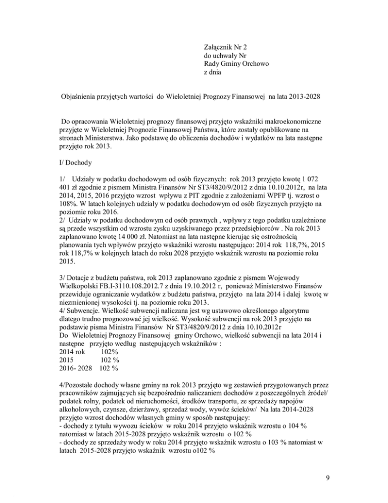 9 Załącznik Nr 2 do uchwały Nr Rady Gminy Orchowo z dnia