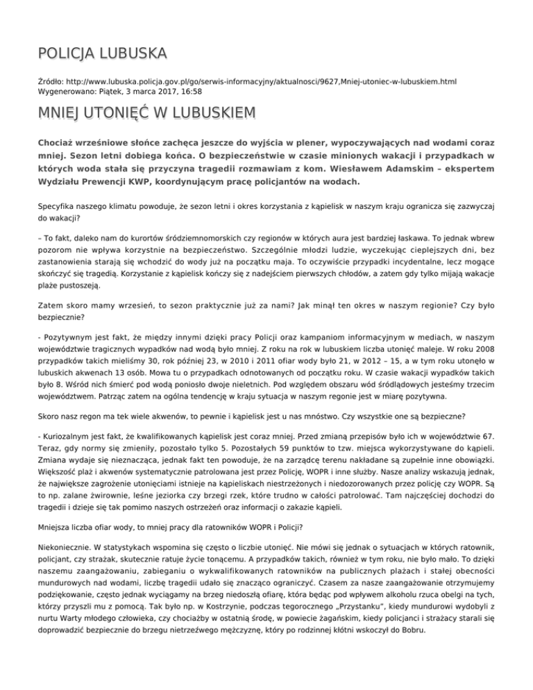 POLICJA LUBUSKA MNIEJ UTONIĘĆ W LUBUSKIEM