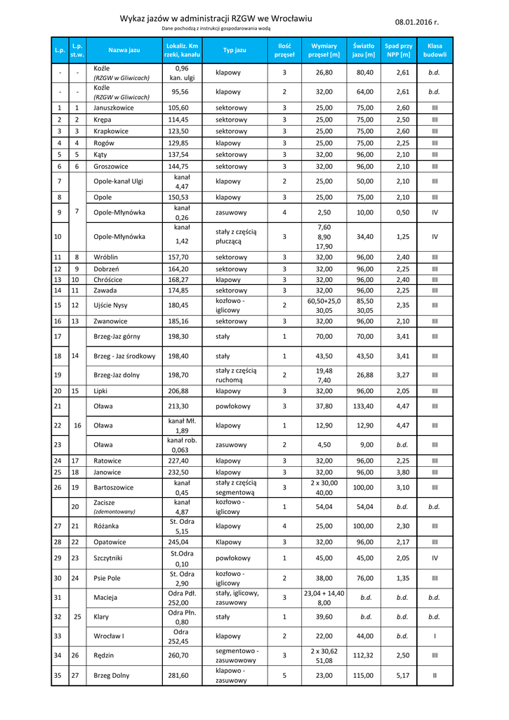 Wykaz jazów w administracji RZGW we Wrocławiu