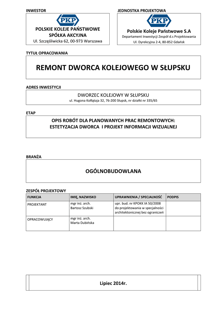 REMONT DWORCA KOLEJOWEGO W SŁUPSKU