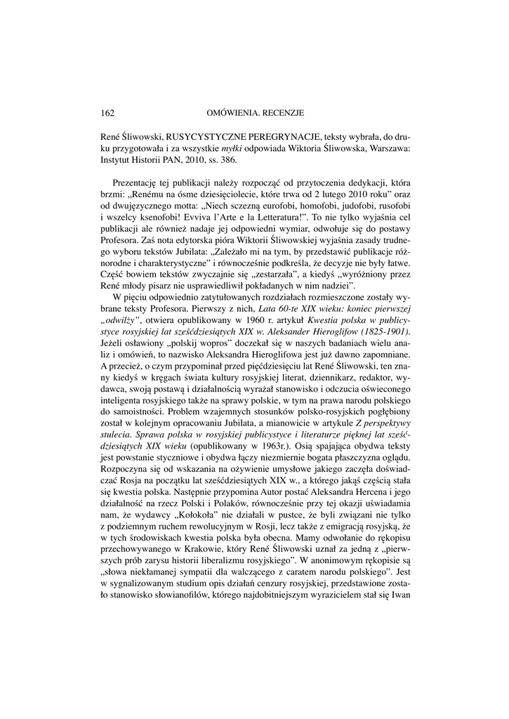 162 René Śliwowski, RUSYCYSTYCZNE PEREGRYNACJE, teksty