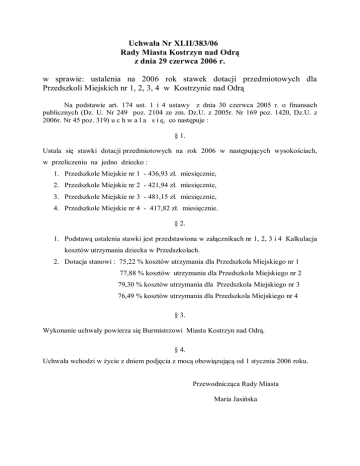 Uchwała XLII-383-06 - dotacja dla przedszkoli na 2006 rok