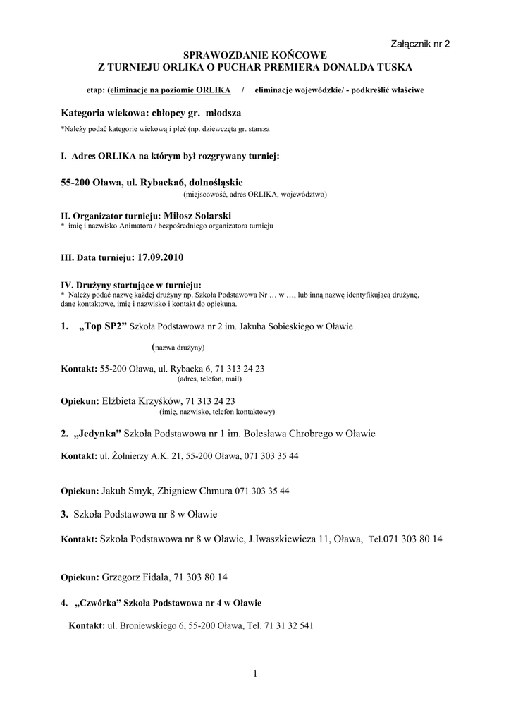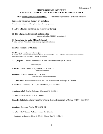 1 SPRAWOZDANIE KOŃCOWE Z TURNIEJU ORLIKA O PUCHAR