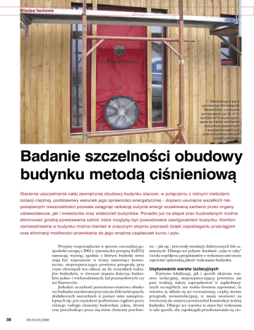 Wiedza fachowa 1. Wentylacyjna płyta pomiarowa Minneapolis BlowerDoor o zakresie pomiarowym od 35 m³/h do7200 m³/h wykorzystywana do celów pomiarów budynków pasywnych i energooszczędnych oraz budynków starych i przemysłowych Badanie szczelności obudowy budynku metodą ciśnieniową Staranne uszczelnienie całej zewnętrznej obudowy budynku stanowi, w połączeniu z różnymi metodami izolacji cieplnej, podstawowy warunek jego sprawności energetycznej – dopiero usunięcie wszelkich niepożądanych nieszczelności pozwala osiągnąć redukcję zużycia energii oczekiwaną zarówno przez organy ustawodawcze, jak i inwestorów oraz właścicieli budynków. Ponadto już na etapie prac budowlanych można eliminować groźbę powstawania szkód, które mogłyby być powodowane zawilgoceniem budynku. Komfort zamieszkiwania w budynku można również w znacznym stopniu poprawić dzięki zapobieganiu przeciągom oraz eliminacji możliwości przenikania do jego wnętrza cząsteczek kurzu i pyłu. Przepisy rozporządzenia w sprawie oszczędnej gospodarki energią z 2002 r. (niemieckie przepisy EnEV)) narzucają wymóg, zgodnie z którym budynki nowe mają być wyposażone w ściany stanowiące hermetyczne, nieprzepuszczające powietrza przegrody, przy czym obowiązek ten odnosi się do wszystkich rodzajów budynków, w równym stopniu dotycząc budynków jedno- i wielorodzinnych, hal przemysłowych czy też biurowców. Jednakże szczelność powietrzno-wiatrowa obudowy budynku uzyskiwana przy użyciu folii izolacyjnych, dodatkowych uszczelnień w postaci taśm samoprzylepnych itp. jest częstokroć pozbawiona ciągłości przez różnego rodzaju elementy budowlane (okna, drzwi) oraz przechodzące przez nią różne elementy przeloto- 38 DE 02-03|2008 we – jak np.: przewody instalacji elektrycznych lub sanitarnych. Dlatego też jedynie działanie „ręka w rękę” i ścisła współpraca projektantów z wykonawcami może zapewnić optymalną jakość wykonania budynku. Usytuowanie warstw izolacyjnych Zarówno lokalizację, jak i sposób ułożenia warstwy izolacyjnej, nieprzepuszczającej powietrza ani pary wodnej, należy zaprojektować w najdrobniejszych szczegółach; nie wolno bowiem zapominać, że warstwę tę układa się po wewnętrznej, ciepłej stronie przegrody termoizolacyjnej, w miarę możności na zwróconej do wnętrza powierzchni konstrukcji nośnej budynku. Dlatego też warstwa ta musi być wykonana w taki sposób, aby zapobiegała przedostawaniu się cie- Wiedza fachowa płego powietrza pochodzącego z wewnętrznej przestrzeni budynku do nieszczelności występujących w jego elementach konstrukcyjnych lub pomiędzy nimi. Ponadto budynek należy chronić przed zewnętrznymi podmuchami wiatru. Służąca do tego warstwa wiatroizolacyjna budynku ułożona będzie po jego stronie zewnętrznej. Należy odróżniać tę wiatroszczelną i paroprzepuszczalną warstwę zewnętrzną od wewnętrznej warstwy uszczelniającej, nieprzepuszczającej powietrza i paroszczelnej. Przejście od dotychczas stosowanej koncepcji projektowania pokryć nieprzepuszczających powietrza w postaci określenia ich ogólnej charakterystyki do koncepcji szczegółowego projektowania tych pokryć znacznie ułatwia późniejsze wykonawstwo prac budowlanych. Ilość przepustów umożliwiających doprowadzenie kabli i przewodów rurowych ulega ograniczeniu do niezbędnego minimum, szczegółowo projektuje się również same przyłącza. Warunkiem minimalizacji przepustów kablowych wykonywanych w pokryciu dachowym jest przystąpienie do wykonywania robót elektrycznych dopiero po zakończeniu prac związanych z układaniem folii paroszczelnej i warstw termoizolacyjnych; kolejnym zaś etapem jest montaż paneli wykończeniowych wykonanych w technologii suchej. Zarówno ekonomiczność warstw izolacyjnych (wewnętrznych i zewnętrznych), jak i ich funkcjonalność są w dużej mierze uzależnione od jakości projektowania. A zatem – z punktu widzenia późniejszych prac wykończeniowych strychu – korzystniejszym rozwiązaniem może okazać się wykonanie kompletnej, zintegrowanej z konstrukcją dachową warstwy izolacyjnej, zamiast podejmowania prób ułożenia nieprzepuszczającej powietrza warstwy na płaszczyźnie utworzonej przez jętki. Na rysunku 4 przedstawiono nową warstwę izolującą górną część strychu, wykonaną na już istniejących elementach konstrukcji dachowej przez ułożenie na dolnej powierzchni istniejących jętek elementów izolacyjnych (np.: lekkich drewnianych paneli izolacyjnych wykonanych ze sprasowanej wełny drzewnej). Prostsze jest jednak rozwiązanie przedstawione na rysunku 5 – górną, położoną nad belkowaniem stropu poddasza część strychu odizolowano od części dolnej poprzez wykonanie pełnej, zintegrowanej z konstrukcją dachową warstwy nieprzepuszczającej powietrza. Przy zastosowaniu takiego rozwiązania konieczne jest jednak wypełnienie przestrzeni wewnętrznej jętek wiązarów dachowych materiałem izolacyjnym (np. celulozą) tak, aby wyeliminować możliwość przepływu strumienia powietrza otoczenia przez wewnętrzną przestrzeń jętek, wywołanego podmuchami zimnego wiatru i zapobiec w ten sposób wychładzaniu konstrukcji. W przypadku starych budynków problemy związane z modernizacją istniejących w tych budynkach pokryć zapewniających szczelność powietrzną mogą stwarzać istniejące w takich budynkach i pełniące rolę łączników belki stropowe, których ręczna obróbka częstokroć wymaga zatrudnienia doświadczonego rzemieślnika. W takich sytuacjach racjonalnym rozwiązaniem jest wypróbowanie zaprojektowanej konstrukcji w ramach „poligonu doświadczalnego” i sprawdzenie jej zdolności adaptacyjnej. Zalecane jest dodatkowe, zewnętrzne ocieplenie twarde belek dachu na całej płaszczyźnie. Warstwy nieprzepuszczające powietrza W konsekwencji zmiennych w czasie cykli nagrzewania i wychładzania budynku oraz zmie