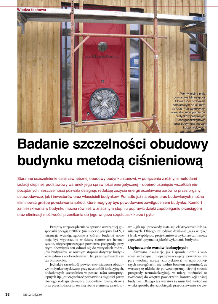 Badanie szczelności obudowy budynku metodą ciśnieniową