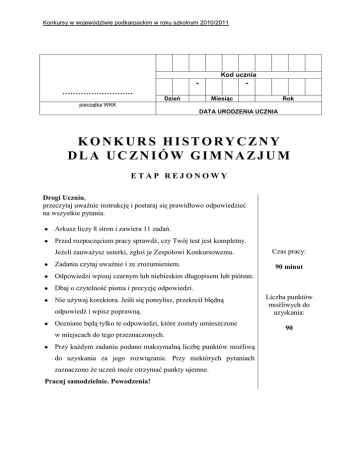 KONKURS HISTORYCZNY DLA UCZNIÓW GIMNAZJUM