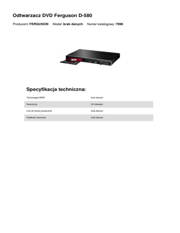 Odtwarzacz DVD Ferguson D-580 Specyfikacja techniczna