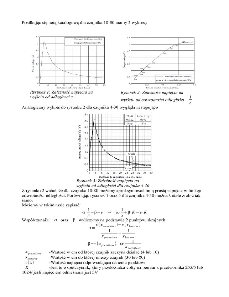 odwrotności odległości. Porównując rysunek 1 oraz 3 dla czujnika 4-30 można śmiało zrobić tak