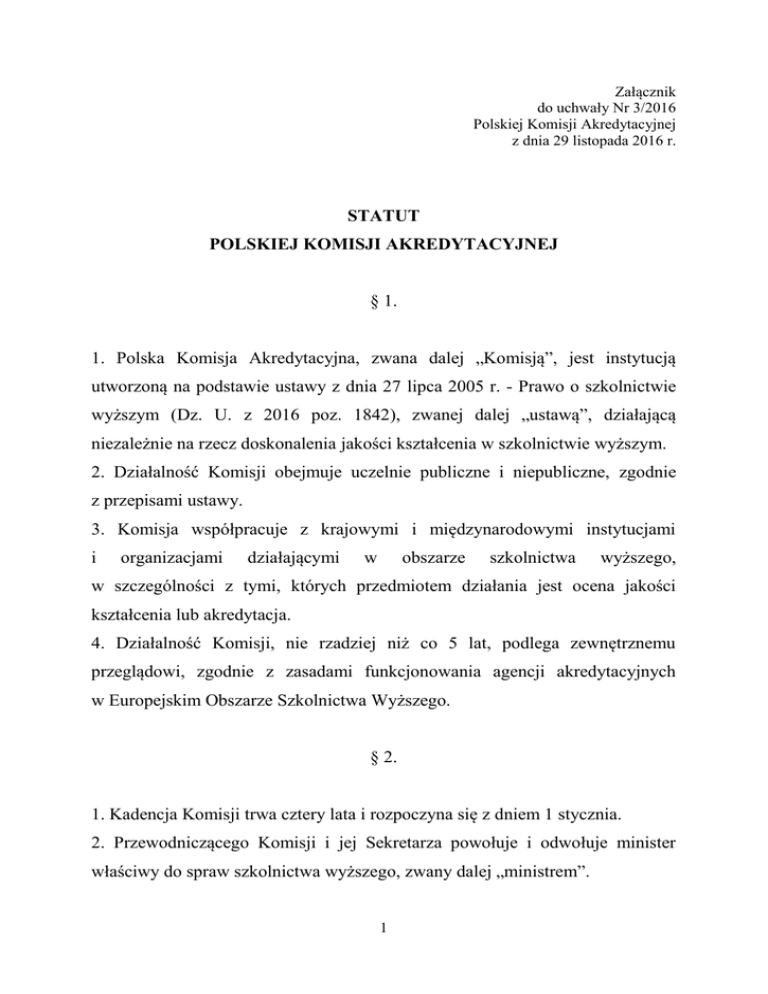 Statut PKA (2017 – ) - Polska Komisja Akredytacyjna
