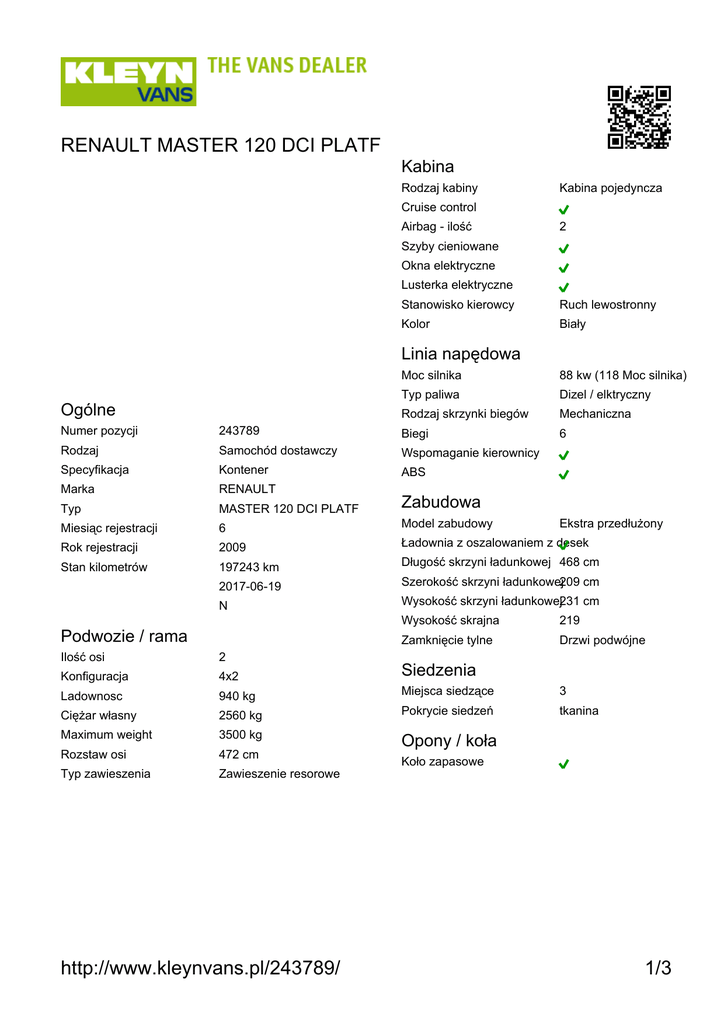 http://www.kleynvans.pl/243789/ 1/3 RENAULT MASTER 120 DCI
