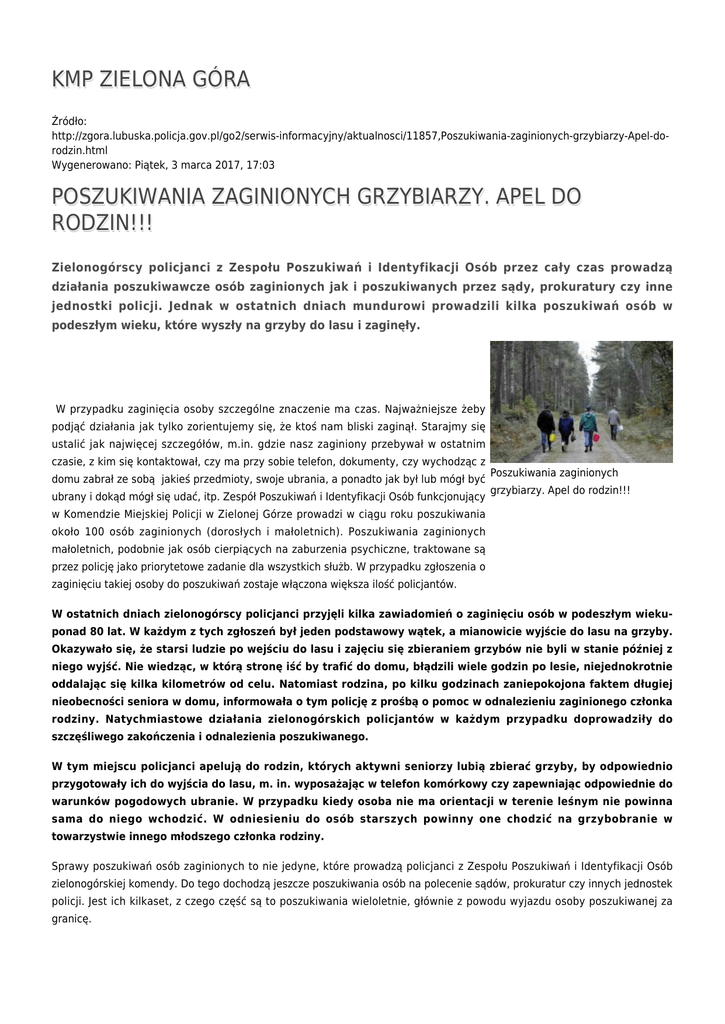 KMP ZIELONA GÓRA POSZUKIWANIA ZAGINIONYCH