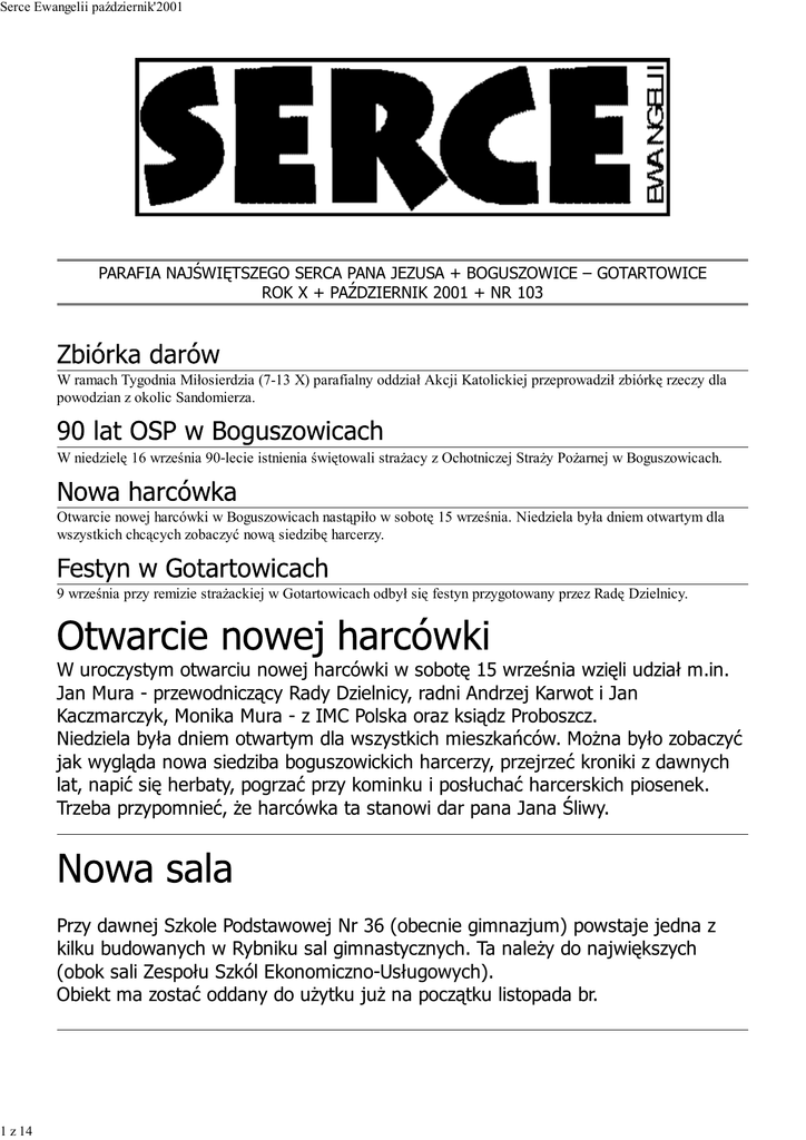 Serce Ewangelii październik`2001 - Parafia Najświętszego Serca