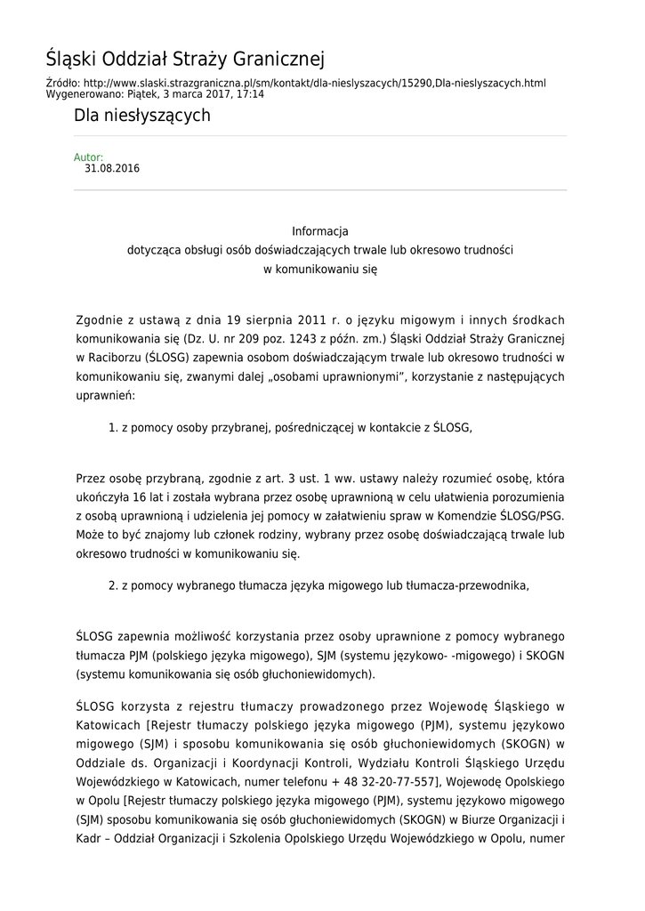 Generuj PDF z tej stronie - Straż Graniczna Śląski Oddział Straży