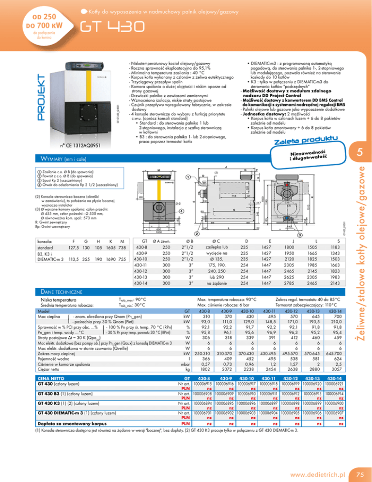 (1) Konsola sterownicza dostępna jest również na żądanie w wersji "bocznej", bez dopłaty. (2) GT 430 K3 pracuje tylko w połączeniu z GT 430 DIEMATIC-m 3.
