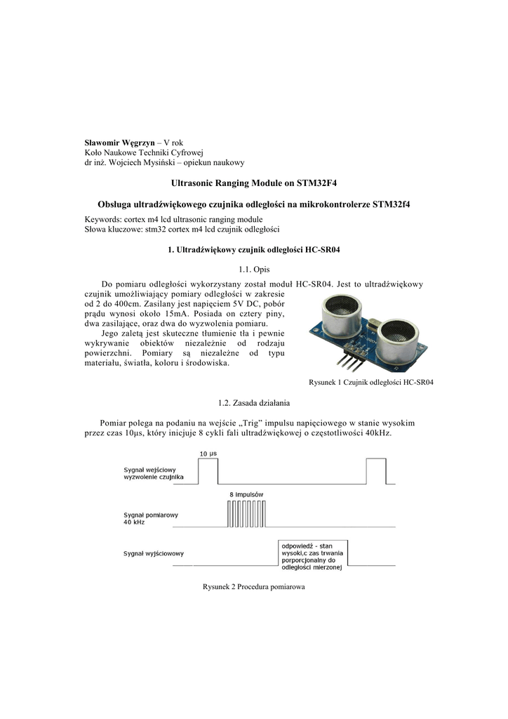 Słowa kluczowe: stm32 cortex m4 lcd czujnik odległości
