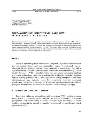 1. Budny T., Niezawodność podsystemu radarów w systemie VTS Zatoka, praca