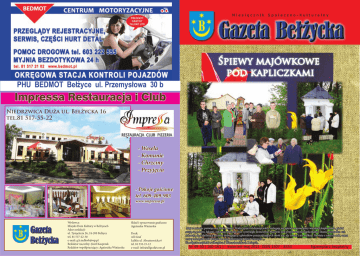 Miesięcznik Społeczno-Kulturalny Śpiewy majówkowe pod kapliczkami PHU BEDMOT Bełżyce ul. Przemysłowa 30 b Impressa Restauracja i Club Niedrzwica Duża ul. Bełżycka 16 tel.81 517-55-22 - Wesela - Komunie - Chrzciny - Przyjęcia - Pokoje gościnne tel. 609-409-903 www.impressa.pl Wydawca: Miejski Dom Kultury w Bełżycach Adres redakcji: ul. Tysiąclecia 26, 24-200 Bełżyce tel. 81 517-22-30 e-mail: [email protected] Redaktor naczelny: Józef Kasprzak Redaktor współpracujący: Agnieszka Winiarska Skład i opracowanie graficzne: Agnieszka Winiarska Druk: Alf-Graf Lublin ul. Abramowicka 6 tel. 81 532-15-12 e-mail: info@[email protected] Maj to miesiąc poświęcony Matce Bożej. Tradycyjnie od dziesięcioleci rozlegają się śpiewy majowe przy wiejskich kapliczkach, pieśni snują się polami, łąkami, oplatając melodią wsie i przyległe domostwa. Majówki pod przydrożnymi kapliczkami i litanie nierzadko też mieszają się z dudniącą muzyką dobiegającą z głośników przejeżdżających obok aut, ale trwają i nie milkną. Niestety z roku na rok, coraz mniej młodych osób dołącza do tego zbiorowego głosu wiernych ... Na zdjęciu majówki w Skrzyńcu i Wierzchowiskach Dolnych. Nr 49-50 ( 160-161 ) · kwiecień-maj 2013 · ISSN 1507 - 8353 Egzemplarz bezpłatny „Styczniowe nadzieje na odzyskanie wolności” VIII PRZEGLĄD PIOSENKI PRZEDSZKOLNEJ Czytaj str.4-5 „Styczniowe nadzieje na odzyskanie wolności” VIII PRZEGLĄD PIOSENKI PRZEDSZKOLNEJ Czytaj str.4-5 1 Gazeta Bełżycka XL sesja Rady Miejskiej 1. Otwarcie sesji. Sesję otworzył Przewodniczący Rady Miejskiej Andrzej Chemperek. 2. Przyjęcie porządku obrad sesji. Radni przyjęli porządek obrad, zgodnie z którym odbywało się posiedzenie. 3. Przyjęcie protokołu z poprzedniej sesji. Radni przyjęli protokół z poprzedniej sesji. 4. Interpelacje i zapytania radnych. Radny Andrzej Bednarczyk zwrócił się z pytaniem do Burmistrza na jakim etapie są formalności związane ze sporem pomiędzy Darią Studzian – miejscowym przedsiębiorcą, a firmą PKN Orlen. 5. Sprawozdanie Burmistrza z najważniejszych rozstrzygnięć podjętych od czasu ostatniej sesji. Burmistrz Ryszard Góra omówił m.in.: - tematykę poruszaną na zebraniach wiejskich, w których łącznie wzięło udział około 650 osób; - projekty, na jakie nasza gmina otrzy- mała dofinansowanie: ścieżkę rowerową – wartość całkowita projektu 51 tys. zł., dwa place zabaw – wartość całkowita 180 tys. zł., oraz boisko przy Szkole Podstawowej w Wierzchowiskach - wartość całkowita 63 tys. zł.; - spotkanie z przedstawicielami firmy Intermarche, która rozpoczyna w maju tego roku budowę marketu w Bełżycach; - złożenie wniosku do ARMiR dotyczącego otwarcia filii Agencji na terenie Bełżyc; w tym roku po uzgodnieniu spraw lokalowych od 15 IV do 23 V będzie możliwość składania przez rolników wniosków o dopłaty bezpośrednio w gminie; - Zarząd CZG PROEKOB wyłonił wykonawcę sortowni odpadów, obecnie trwa okres na złożenie ewentualnych protestów; - w związku z powstaniem drogi 747 wyłoniono konsorcjum firm na budowę obwodnicy Bełżyc; 6. Informacja na temat stanu bezpieczeństwa publicznego i ochrony przeciwpożarowej na terenie Miasta i Gminy Wydanie internetowe gazety do pobrania na stronie www.mdk-belzyce.pl Bełżyce. Informację złożyli kolejno: Sławomir Bajan Dowódca Miejsko-Gminny OSP, Radosław Łukanowski p.o. Komendanta Komisariatu Policji w Bełżycach oraz Dariusz Pruszkowski zastępca Dowódcy PSP JRG w Bełżycach. KZPMKiPP pozytywnie zaopiniowała informacje. Rada Miejska przyjęła informacje. 7. Podjęcie uchwały w sprawie wyrażenia lub niewyrażenia zgody na utworzenie funduszu sołeckiego. Burmistrz omówił oba warianty uchwał. KRGiF pozytywnie zaopiniowała uchwałę o wyrażeniu zgody na utworzenie funduszu sołeckiego, KZPMKiPP pozytywnie zaopiniowała uchwałę o wyrażeniu zgody na utworzenie funduszu sołeckiego, KRŻiOŚ pozytywnie zaopiniowała uchwałę o wyrażeniu zgody na utworzenie funduszu sołeckiego, cd. str.2 Gazeta Bełżycka - Miesięcznik Samorządowy 2 Gazeta Bełżycka KOZKKFSiSS pozytywnie zaopiniowała uchwałę o wyrażeniu zgody na utworzenie funduszu sołeckiego. Rada Miejska podjęła uchwałę o wyrażeniu zgody na utworzenie funduszu sołeckiego. 8. Podjęcie uchwały w sprawie zmian w budżecie gminy Bełżyce na 2013 rok. KRGiF pozytywnie zaopiniowała projekt uchwały. Rada Miejska podjęła uchwałę o zmianach w budżecie na 2013 rok. 9. Odpowiedzi na interpelacje. Burmistrz Ryszard Góra poinformował, że Sanepid i Regionalna Dyrekcja Ochrony Środowiska, nie zgłosiły zapotrzebowania na raport środowiskowy. Złożenie wniosku o komunalizację mienia tzw. Domu Ludowego w Krężnicy Okrągłej. 10. Wolne wnioski. Radny Andrzej Bednarczyk poinfor- mował radnych i gości biorących udział w sesji rady Miejskiej o spotkaniu organizowanym przez Lokalną Grupę Działania „Kraina wokół Lublina” na temat możliwości składania wniosków i pozyskiwania funduszy. Sołtys Krężnicy Okrągłej Stanisław Broda dziękował za zaangażowanie w sprawie komunalizacji mienia Domu Ludowego. 11. Zamkniecie sesji. Wręczono odznaczenia Kilkudziesięciu członków i sympatyków należących do Zarządu Oddziału Związku Inwalidów Wojennych RP w Bełżycach wzięło udział w zebraniu sprawozdawczo - wyborczym połączonym z wręczeniem Honorowych Krzyży z Szablami za Zasługi dla ZIW. Odznaczenia kolejno przyznano: - prezesowi Eugeniuszowi Wójtowiczowi - Józefowi Chęciowi - Edwardowi Chomickiemu - Józefowi Dobrowolskiemu - Henrykowi Dziubkowi - Józefowi Listosiowi - Feliksowi Łakocie - Stanisławowi Kulińskiemu - Józefowi Rzedzickiemu - Alfredowi Stochmalowi - Jerzemu Wrońskiemu i Władysławowi Wójcikowi. Za dobrą współpracę ze ZIW uhonorowany Krzyżem został Burmistrz Bełżyc Ryszard Góra i Zastępca Burmistrza Marcin Olszak. Po