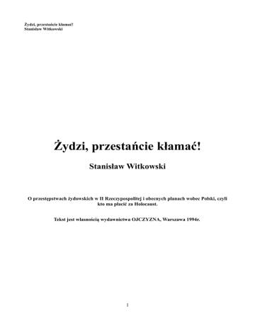 Żydzi, przestańcie kłamać! Stanisław Witkowski