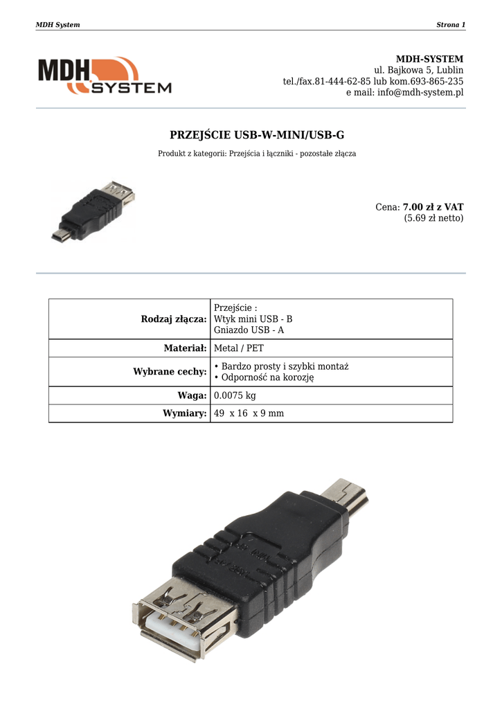 PRZEJŚCIE USB-W-MINI/USB-G - Mdh