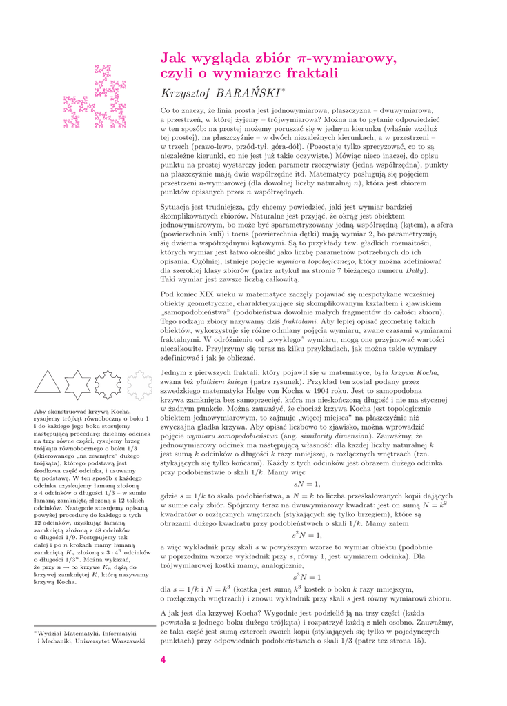 dla szerokiej klasy zbiorów (patrz artykuł na stronie 7 bieżącego numeru Delty).