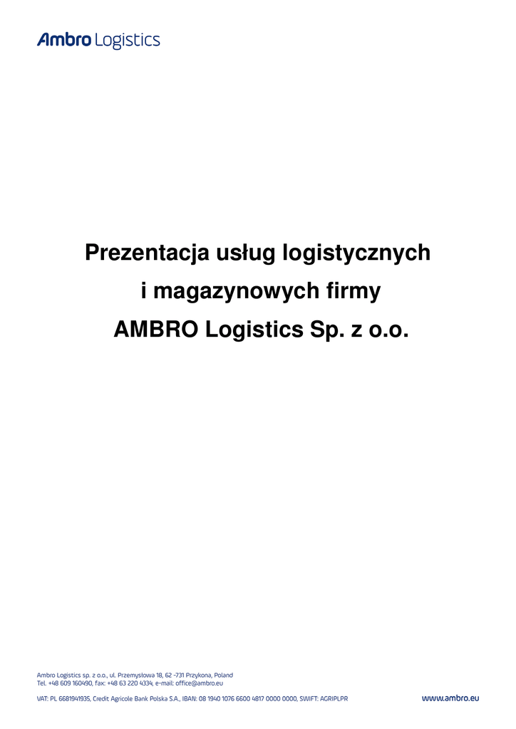 Prezentacja usług logistycznych i magazynowych firmy AMBRO