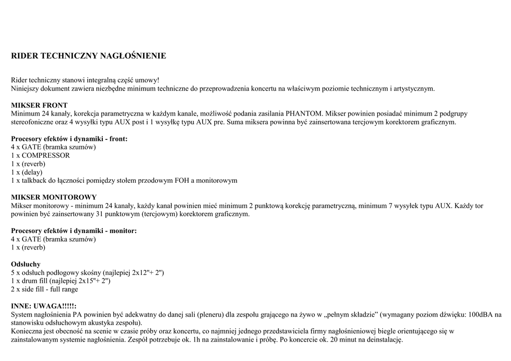 RIDER TECHNICZNY NAGŁOŚNIENIE