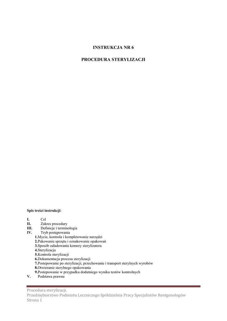 Procedura sterylizacji - Spółdzielnia Pracy Specjalistów