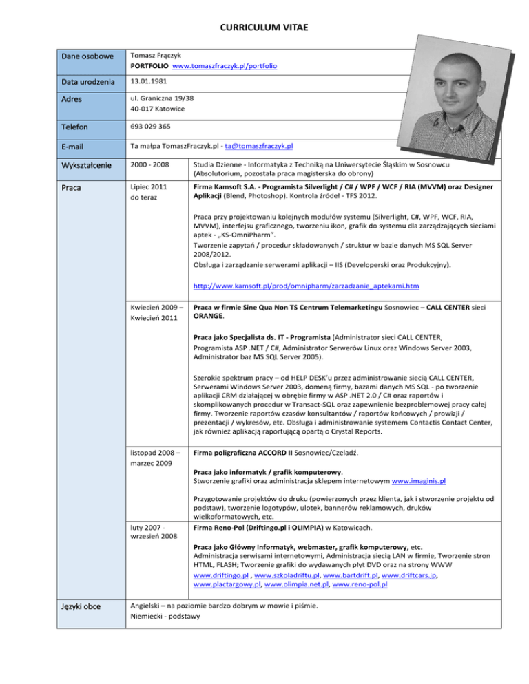 CV - TomaszFraczyk.pl