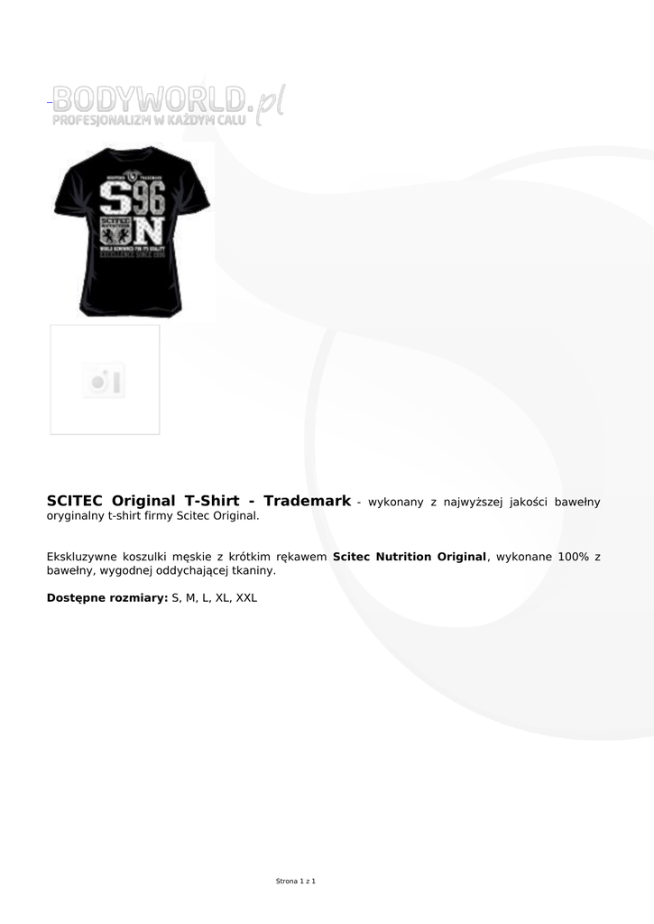 SCITEC Original T-Shirt - Trademark - wykonany z najwyższej jakości bawełny oryginalny t-shirt firmy Scitec Original. Ekskluzywne koszulki męskie z krótkim rękawem Scitec Nutrition Original, wykonane 100% z bawełny, wygodnej oddychającej tkaniny. Dostępne rozmiary: S, M, L, XL, XXL Strona 1 z 1