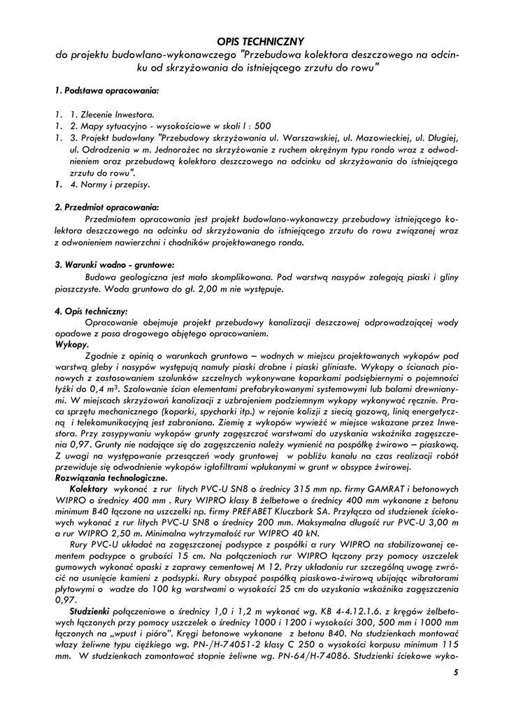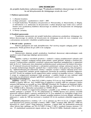 do projektu budowlano-wykonawczego "Przebudowa kolektora deszczowego na odcinku od skrzyżowania do istniejącego zrzutu do rowu"