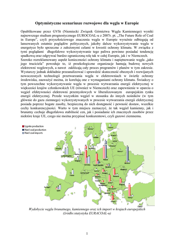 Optymistyczne scenariusze rozwojowe dla węgla w Europie