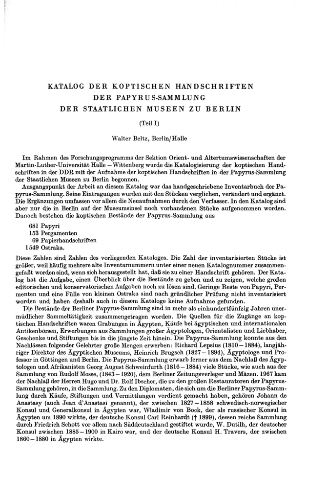 Martin-Luther-Universität Halle — Wittenberg wurde die Katalogisierung der koptischen Handschriften in der DDR mit der Aufnahme der koptischen Handschriften in der Papyrus-Sammlung