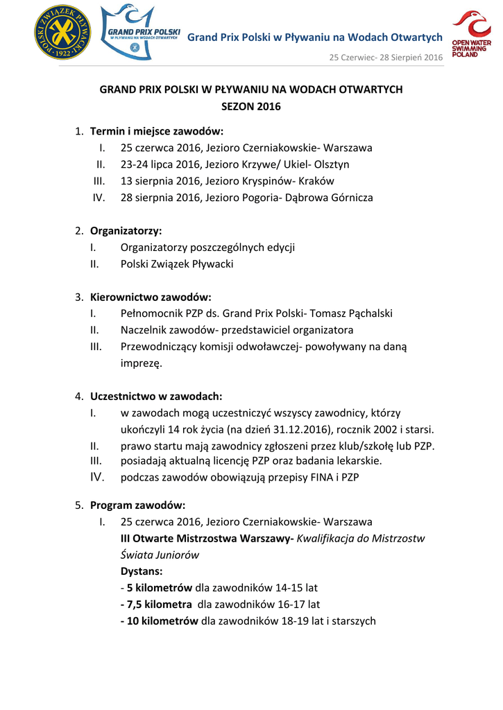 Regulamin Grand Prix Polski w pływaniu na wodach otwartych