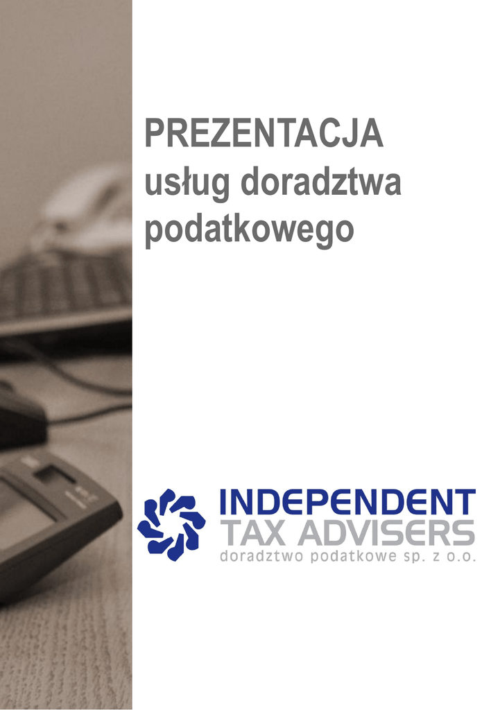 PREZENTACJA usług doradztwa podatkowego O Firmie Spółka INDEPENDENT TAX ADVISERS Doradztwo Podatkowe Sp. z o.o. rozpoczęła działalność w zakresie świadczenia usług doradztwa podatkowego w lutym 2004 roku. Członkowie zespołu Independent Tax Advisers Doradztwo Podatkowe Sp. z o.o. to licencjonowani doradcy podatkowi oraz doświadczeni konsultanci, którzy zdobywali doświadczenie zawodowe w renomowanych firmach doradczych. Oferujemy naszym klientom najwyższy standard jakości obsługi i zapewniamy profesjonalną obsługę prowadzonej działalności gospodarczej w Polsce. W naszej pracy koncentrujemy się na dostarczaniu bezpiecznych i efektywnych podatkowo rozwiązań, dostosowanych do indywidualnych potrzeb każdego z naszych klientów. Dlatego, świadczymy usługi doradcze w porozumieniu z klientem uwzględniając jego indywidualne potrzeby i specyfikę prowadzonej działalności gospodarczej, tak aby zakres i forma naszych usług spełniały jego oczekiwania . Zakres usług Doradztwo podatkowe w zakresie: • podatku dochodowego od osób prawnych (CIT), • podatku od towarów i usług (VAT), • podatku dochodowego od osób fizycznych (PIT), • cła i akcyzy, • opłaty skarbowej oraz podatku od czynności cywilnoprawnych, • podatku od nieruchomości, • prawa dewizowego, • pomoc przy wypełnianiu deklaracji i informacji podatkowych a także innych obowiązków sprawozdawczych, • rejestracja podatników w urzędzie skarbowym, w szczególności podmiotów zagranicznych na VAT, • VAT compliance, • pomoc przy uzyskiwaniu zwrotu VAT dla podmiotów zagranicznych, • innych zobowiązań publicznoprawnych. Doradztwo podatkowe dotyczące prowadzonych transakcji takich jak: • nabycie, przekształcenia, restrukturyzacje czy łączenie podmiotów, • planowanie podatkowe działalności inwestycyjnej oraz bieżącej, • szeroko rozumiane transakcje z podmiotami powiązanymi, w tym w szczególności przygotowywanie dokumentacji podatkowej o której mowa w art. 9a ustawy o CIT pomiędzy podmiotami powiązanymi. Asysta w postępowaniach podatkowych i kontrolnych: • pomoc i kompleksowa asysta przy opracowywaniu pism kierowanych do organów podatkowych, skarbowych oraz do sądów administracyjnych, • koordynacja wszelkich czynności dokonywanych na każdym etapie postępowania administracyjnego lub sądowego, którego przedmiotem są zobowiązania podatkowe klienta, • reprezentowanie klienta w postępowaniu przed organami podatkowymi lub skarbowymi oraz przed sądami administracyjnymi, • badanie zgodności stosowanych procedur sprawozdawczości podatkowej z obowiązującymi przepisami. Przeglądy podatkowe: • projekt, który ma na celu analizę sytuacji podatkowej klienta i jej optymalizację z punktu widzenia obciążeń podatkowych i innych danin publicznoprawnych w ramach obowiązujących przepisów prawa, • polega na weryfikacji i analizie dokumentów źródłowych klienta, takich jak np.: faktury, rachunki, umowy, deklaracje, • obejmuje wybrany przez klienta okres, np. miesiąc, kwartał lub rok podatkowy. Szkolenia/Warsztaty: • organizujemy szkolenia indywidualne oraz warsztaty szkoleniowe dostosowane do potrzeb klientów, • nasi Doradcy omawiają najistotniejsze zagadnienia podatkowe oraz wyjaśniają wszelkie wątpliwości klientów w ramach tematyki szkolenia / warsztatów. Partnerzy Joanna Kanicka-Ziółkowska: Doradca Podatkowy, Radca Prawny, Partner Zarządzający Joanna przez dziesięć lat pracowała w międzynarodowej firmie Ernst & Young Sp. z o.o. Jej doświadczenie zawodowe obejmuje doradztwo podatkowe dla największych polskich i zagranicznych firm działających na rynku polskim. W trakcie pracy zawodowej Joanna świadczyła usługi dla firm z sektora farmaceutycznego, budowlanego, paliwowego oraz FMCG jak również dla firm wydawniczych i informatycznych. Do jej zadań należy rozwiązywanie strategicznych problemów podatkowych, proponowanie efektywnych podatkowo rozwiązań oraz bieżące doradztwo. Dane kontaktowe: email: [email protected], tel. 22 250 31 04 Dorota Baczewska-Golińska: Doradca Podatkowy, Partner Dorota praktykę zawodową rozpoczęła w międzynarodowej firmie Ernst & Young Sp. z o.o. Jest odpowiedzialna za praktykę kancelarii w zakresie opodatkowania przedsiębiorców podatkami pośrednimi, tj. VAT i akcyzą oraz zagadnień celnych. W ramach VAT Forum, którego jest Partnerem, prowadzi szkolenia dotyczące regulacji Unijnych w zakresie VAT oraz ich implementacji do polskiego porządku prawnego. W trakcie pracy zawodowej uczestniczyła w pracach dla firm z sektora budowlanego, paliwowego, informatycznego i motoryzacyjnego. Dane kontaktowe: email: [email protected], tel. 22 250 31 05 Alicja Kadzińska: Doradca Podatkowy, Partner Alicja rozpoczęła praktykę zawodową w międzynarodowej firmie Ernst & Young Sp. z o.o. Specjalizuje się w zakresie opodatkowania podatkiem dochodowym od osób prawnych oraz podatkiem dochodowym od osób fizycznych. Świadczy usługi dla firm z sektora farmaceutycznego, medialnego a także budowlanego. Do jej zadań należy przede wszystkim bieżące doradztwo podatkowe, przeglądy podatkowe, przygotowywanie optymalizacji podatkowych a także asysta w postępowaniach podatkowych. Dane kontaktowe: email: [email protected], tel. 22 250 31 06 Kontakt Adres: Indepedent Tax Advisers Doradztwo Podatkowe Sp. z o.o. ul. Bednarska 7 00-310 Warszawa Tel.: (22) 250 31 00/31 01 Fax: (22) 250 31 02 KRS 0000188872 Sąd Rejonowy dla m.st Warszawy w Warszawie, XII Wydział Gospodarczy KRS Nr wpisu w rejestrze MF osób prawnych uprawnionych do wykonywania doradztwa podatkowego: 260 REGON: 015604344 NIP: 526-27-39-944 www.itadp.pl