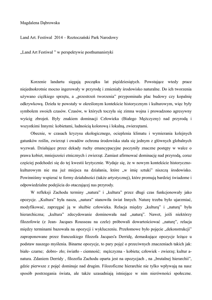 Land Art Festiwal w perspektywie posthumanistyki Magdalena