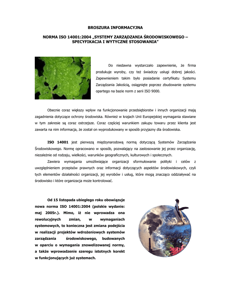 BROSZURA INFORMACYJNA NORMA ISO 14001:2004