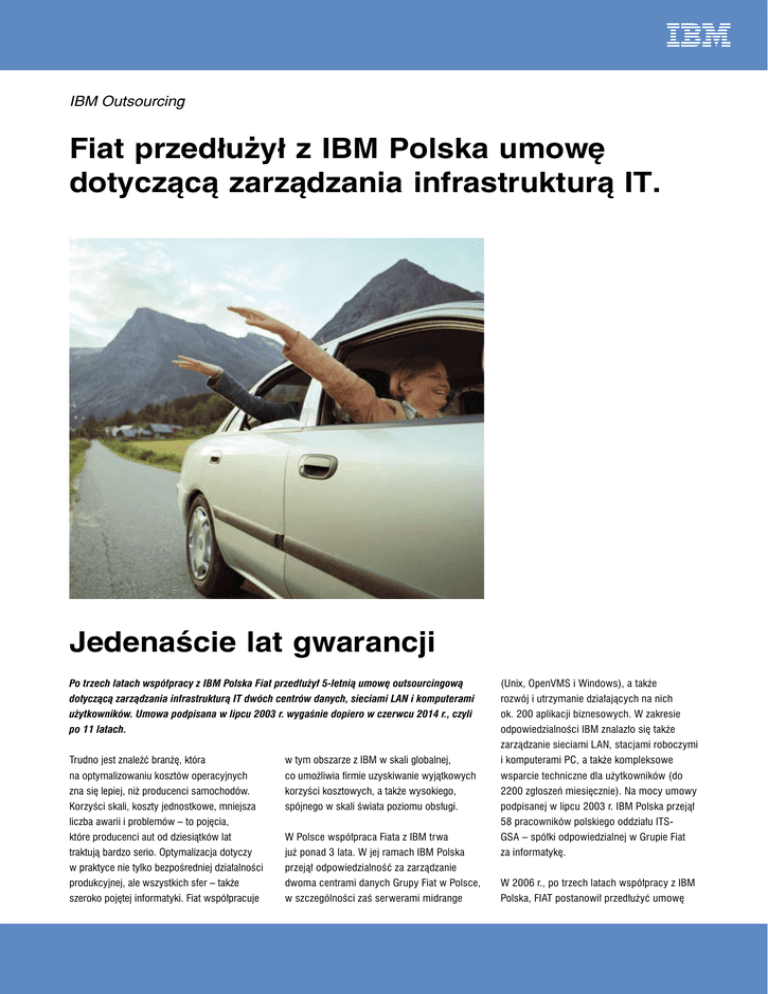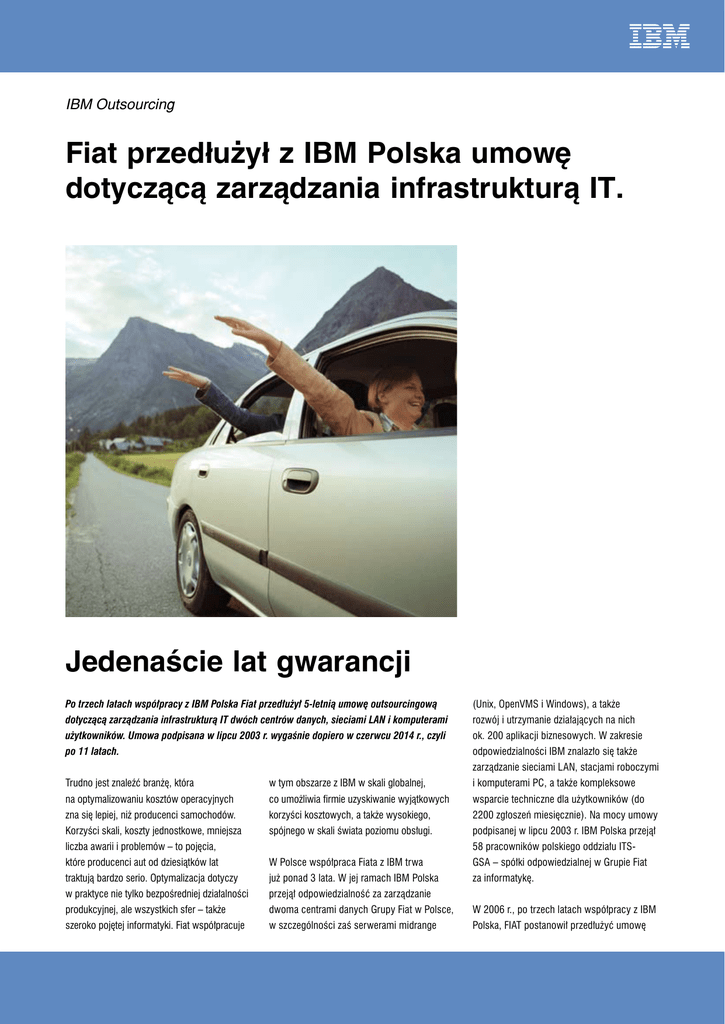 Fiat przedłużył z IBM Polska umowę dotyczącą zarządzania