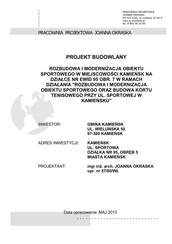 Opis techniczny Kamieńsk stadion poprawki - Gmina Kamieńsk