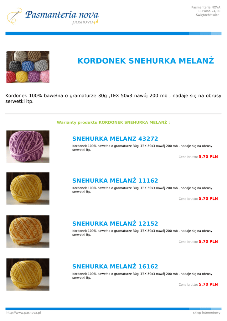 Pasmanteria NOVA ul.Polna 24/30 Świętochłowice KORDONEK SNEHURKA MELANŻ Kordonek 100% bawełna o gramaturze 30g ,TEX 50x3 nawój 200 mb , nadaje się na obrusy serwetki itp. Warianty produktu KORDONEK SNEHURKA MELANŻ : SNEHURKA MELANZ 43272 Kordonek 100% bawełna o gramaturze 30g ,TEX 50x3 nawój 200 mb , nadaje się na obrusy serwetki itp. Cena brutto: 5,70 PLN SNEHURKA MELANŻ 11162 Kordonek 100% bawełna o gramaturze 30g ,TEX 50x3 nawój 200 mb , nadaje się na obrusy serwetki itp. Cena brutto: 5,70 PLN SNEHURKA MELANŻ 12152 Kordonek 100% bawełna o gramaturze 30g ,TEX 50x3 nawój 200 mb , nadaje się na obrusy serwetki itp. Cena brutto: 5,70 PLN SNEHURKA MELANŻ 16162 Kordonek 100% bawełna o gramaturze 30g ,TEX 50x3 nawój 200 mb , nadaje się na obrusy serwetki itp. Cena brutto: http://www.pasnova.pl 5,70 PLN sklep internetowy Pasmanteria NOVA ul.Polna 24/30 Świętochłowice SNEHURKA MELANŻ 33032 Kordonek 100% bawełna o gramaturze 30g ,TEX 50x3 nawój 200 mb , nadaje się na obrusy serwetki itp. Cena brutto: 5,70 PLN SNEHURKA MELANŻ 33152 Kordonek 100% bawełna o gramaturze 30g ,TEX 50x3 nawój 200 mb , nadaje się na obrusy serwetki itp. Cena brutto: 5,70 PLN SNEHURKA MELANŻ 34382 Kordonek 100% bawełna o gramaturze 30g ,TEX 50x3 nawój 200 mb , nadaje się na obrusy serwetki itp. Cena brutto: 5,70 PLN SNEHURKA MELANŻ 45272 Kordonek 100% bawełna o gramaturze 30g ,TEX 50x3 nawój 200 mb , nadaje się na obrusy serwetki itp. Cena brutto: 5,70 PLN SNEHURKA MELANŻ 55032 Kordonek 100% bawełna o gramaturze 30g ,TEX 50x3 nawój 200 mb , nadaje się na obrusy serwetki itp. Cena brutto: 5,70 PLN SNEHURKA MELANŻ 55382 Kordonek 100% bawełna o gramaturze 30g ,TEX 50x3 nawój 200 mb , nadaje się na obrusy serwetki itp. Cena brutto: http://www.pasnova.pl 5,70 PLN sklep internetowy Pasmanteria NOVA ul.Polna 24/30 Świętochłowice SNEHURKA MELANŻ 56152 Kordonek 100% bawełna o gramaturze 30g ,TEX 50x3 nawój 200 mb , nadaje się na obrusy serwetki itp. Cena brutto: 5,70 PLN SNEHURKA MELANŻ 61032 Kordonek 100% bawełna o gramaturze 30g ,TEX 50x3 nawój 200 mb , nadaje się na obrusy serwetki itp. Cena brutto: 5,70 PLN SNEHURKA MELANŻ 61152 Kordonek 100% bawełna o gramaturze 30g ,TEX 50x3 nawój 200 mb , nadaje się na obrusy serwetki itp. Cena brutto: 5,70 PLN SNEHURKA MELANŻ 66322 Kordonek 100% bawełna o gramaturze 30g ,TEX 50x3 nawój 200 mb , nadaje się na obrusy serwetki itp. Cena brutto: 5,70 PLN SNEHURKA MELANŻ 71032 Kordonek 100% bawełna o gramaturze 30g ,TEX 50x3 nawój 200 mb , nadaje się na obrusy serwetki itp. Cena brutto: 5,70 PLN SNEHURKA MELANŻ 71262 Kordonek 100% bawełna o gramaturze 30g ,TEX 50x3 nawój 200 mb , nadaje się na obrusy serwetki itp. Cena brutto: http://www.pasnova.pl 5,70 PLN sklep internetowy Pasmanteria NOVA ul.Polna 24/30 Świętochłowice SNEHURKA MELANŻ 72262 Kordonek 100% bawełna o gramaturze 30g ,TEX 50x3 nawój 200 mb , nadaje się na obrusy serwetki itp. Cena brutto: 5,70 PLN SNEHURKA MELANŻ 77262 Kordonek 100% bawełna o gramaturze 30g ,TEX 50x3 nawój 200 mb , nadaje się na obrusy serwetki itp. DOSTEPNE 7 SZT Cena brutto: 5,70 PLN SNEHURKA MELANŻ 88152 Kordonek 100% bawełna o gramaturze 30g ,TEX 50x3 nawój 200 mb , nadaje się na obrusy serwetki itp. Cena brutto: 5,70 PLN SNEHURKA MELANŻ 99592 Kordonek 100% bawełna o gramaturze 30g ,TEX 50x3 nawój 200 mb , nadaje się na obrusy serwetki itp. Cena brutto: http://www.pasnova.pl 5,70 PLN sklep internetowy