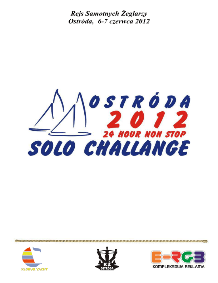 Rejs Samotnych Żeglarzy Ostróda, 6-7 czerwca 2012 ZAWIADOMIENIE Rejs Samotnych Żeglarzy Ostróda 2012 Solo Challenge 24 HOUR NON STOP 1. ORGANIZATOR Grupa Ostródzkich Żeglarzy, patronat Klub Żeglarski Ostróda. 2. TERMIN Rejs odbędzie się od godz. 17:00 dnia 6 czerwca do godz. 17:00 dnia 7 czerwca 2012. 3. PORT REJSU Klub Żeglarski Ostróda ul. Sowińskiego 12, Ostróda, tel. 89 646 21 64 e-mail:[email protected] strona internetowa: www.zagle.ostroda.pl 4. MIEJSCE REJSU Rejs odbędzie się na akwenie jeziora Drwęckiego w część północnej. 4. KOMANDOR REJSU Komandor jest to osoba nadzorująca przebieg rejsu i niebędąca jej uczestnikiem. Decyzje podjęte przez Komandora są ostateczne. 5. UCZESTNICY a) Zgłoszenie do rejsu przyjmowane są do dnia 06.06.2012 do 16:00 w Bosmanacie Portu Rejsu na drukach dostarczonych przez organizatora. b) W rejsie może wziąć udział każda osoba pełnoletnia. c) Wpisowe 20 zł od uczestnika. d) Załoga jachtu tylko 1-osobową. Sternik musi posiadać odpowiednie uprawnienia i umiejętności żeglarskie wynikające z przepisów. 6. JACHTY a) Udział w rejsie biorą tylko jachty żaglowe b) Jachty muszą posiadać wyposażenie, środki ratunkowe, oświetlenie zewnętrzne (jacht musi być widoczny w porze nocnej) i środki łączności takie jak radio UKF(morskie) lub telefon komórkowy. Wyposażenie jachtów musi być zgodne z odpowiednimi przepisami, szczególnie w zakresie środków ratunkowych. c) Jacht może nosić dowolny rodzaj ożaglowania min. spinaker, geanaker, genoa. d) Jacht może posiadać dowolne wyposażenie w tym dowolny rodzaj elektroniki takiej jak, echosond, wiatrowskaz, GPS, Chartplotter, samoster, kompasy, itp. 7. PODZIAŁ NA GRUPY Dopuszcza się podział uczestników na dwie grup a) Grupa 1 uczestnicy którzy podczas rejsu będą używali samosterów. b) Grupa 2 uczestnicy którzy podczas rejsu nie będą używali samosterów. 8. PROGRAM REJSU 06.06.2012 godz. 16:30 - spotkanie uczestników godz. 17:00 - rozpoczęcie rejsu 07.06.2012 godz. 17:00 - zakończenie rejsu godz. 18:00 - podsumowanie rejsu, wręczenie dyplomów, ognisko. 9. TRASA REJSU a) Rejs odbywa się na trasie Ostróda - Piławki - Ostróda. b) Trasa jest oznaczona trzema bojami - Boja Piławki nr1 - Boja Bezpieczeństwa - Boja Ostróda nr2 c) Strona okrążania boi zostanie ustalona na spotkaniu uczestników rejsu. d) Podczas rejsu należy omijać zieloną boję szlakową tak zwaną Boją bezpieczeństwa która ustawiona jest na końcu toru kajakowego od strony zachodniej akwenu, którą należy będzie omijać prawą burtą zmierzając do boi Piławki nr 1 i lewą burtą zmierzając do boi Ostróda nr 2. Oznaczenie tej boi zostanie podane na spotkaniu uczestników rejsu. 10. PRZEBIEGU REJSU 1. Rejs rozpoczyna się w dniu 06.06.2012 o godz.17:00 pomiędzy boją Ostróda nr2, a wiatrowskazem usytuowanym na pomoście w Klubie Żeglarskim Ostróda. Moment rozpoczęcia rejsu będzie zasygnalizowany jednym sygnałem dźwiękowym. 2. Każdy uczestnik rejsu okrąża na przemian każdą boję począwszy od boi Piławki nr1, następnie boję Ostróda nr2 oraz boję bezpieczeństwa i tak aż do zakończenia rejsu. 3. Każde ominięcie boi Piławki nr1 i boi Ostróda nr2 jest odnotowywane przez każdego uczestnika na karcie rejsu poprzez wpisanie godziny jej ominięcia. 4. Rejs kończy w dniu 07.06.2012 o godz. 17:00. O tej godzinie zostanie otwarta linia końca rejsu w tym samym miejscu co linia rozpoczęcia rejsu tj. pomiędzy boją Ostróda nr2, a wiatrowskazem usytuowanym na pomoście w Klubie Żeglarskim Ostróda. Moment zakończenia rejsu będzie zasygnalizowany jednym sygnałem dźwiękowym. 5. Każdy uczestnik w dowolnym momencie może przerwać rejs, musi o tym fakcie poinformować komandora rejsu. 6. Po zakończeniu rejsu tj. od godz. 17:00 dnia 07.06.2012 jachty dopływają do najbliższej boi będącej na trasie rejsu okrążają ją i wracają na linię końca rejsu w następujący sposób: a) Jachty, które minęły boję Piławki nr 1 dopływają do boi Ostróda nr 2 i kończą rejs. b) Jachty, które są pomiędzy boją Ostróda nr 2, a boja bezpieczeństwa umieszczonej na końcu toru kajakowego, omijają boje bezpieczeństwa, dopływają do boi Ostróda nr 2 i kończą rejs. c) Jachty, które są pomiędzy boją bezpieczeństwa, a boją Piławki nr1, omijają Piławki nr1, dopływają do boi Ostróda nr2 i kończą rejs. d) Po zakończeniu rejsu każdy uczestnik zdaje komandorowi kartę rejsu z informacją o ilości wykonanych pełnych okrążeni. Pełne okrążenie jest liczone od boi Ostróda nr2, poprzez boję Piławki nr 1 i spowrotem na boję Ostróda nr2. 7. W czasie trwania rejsu a) zabrania się : - Schodzenia na ląd. - Cumowania przy pomostach lub brzegach. - Uzyskiwania pomocy z zewnątrz (np. dopływanie do lądu i dobierania jedzenia, narzędzi, osprzętu). - Używania napędów pomocniczych (silniki, pagaje, wiosła itp.). - Holowania innych uczestników. b) Dopuszcza się: - Uzyskiwanie pomocy od innych uczestników rejsu. - Postój na kotwicy. - Dryfowanie bez żagli. 11. ZDOBYWANIE PUNKÓW W CZASIE REJSU Za każde pełne okrążenie trasy rejsu uczestnik otrzymuje 1 pkt. Wyjątek stanowi ostatnie okrążenie pomiędzy boją Ostróda nr2, a boją bezpieczeństwa po zakończeniu rejsu (patrz pkt. 5.b) za te okrążenie uczestnik otrzymuje 0,5 pkt. 12. BEZPIECZEŃSTWO a) W przypadku trudnych warunków atmosferycznych rejs może zostać odwołany lub przerwany w trakcie jego trwania. b) Decyzję o przerwaniu rejsu podejmuje Komandor rejsu. c) W momencie przerwania rejsu uczestnik nie ma obowiązku opłynąć najbliższej boi w takim przypadku liczy jest pełną liczbę okrążeni i pozycję uczestnika na moment przerwania rejsu. Uczestnik może powrócić do portu używając dowolnego napędu. d) Komandor może zarządzić obowiązek noszenia kamizelek ratunkowych bez względu na porę dnia. e) W czasie godzin nocnych tj. od zmierzchu d