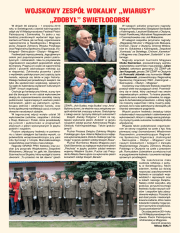 WojskoWy Zespół Wokalny „Wiarusy” „Zdobył” sWietłogorsk