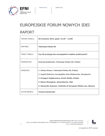 raport otwarcia - EFNI 2012 - Europejskie Forum Nowych Idei