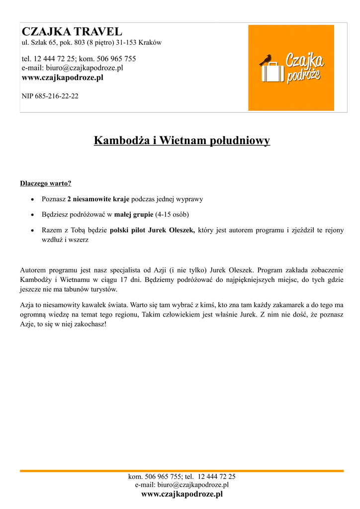 CZAJKA TRAVEL Kambodża i Wietnam południowy